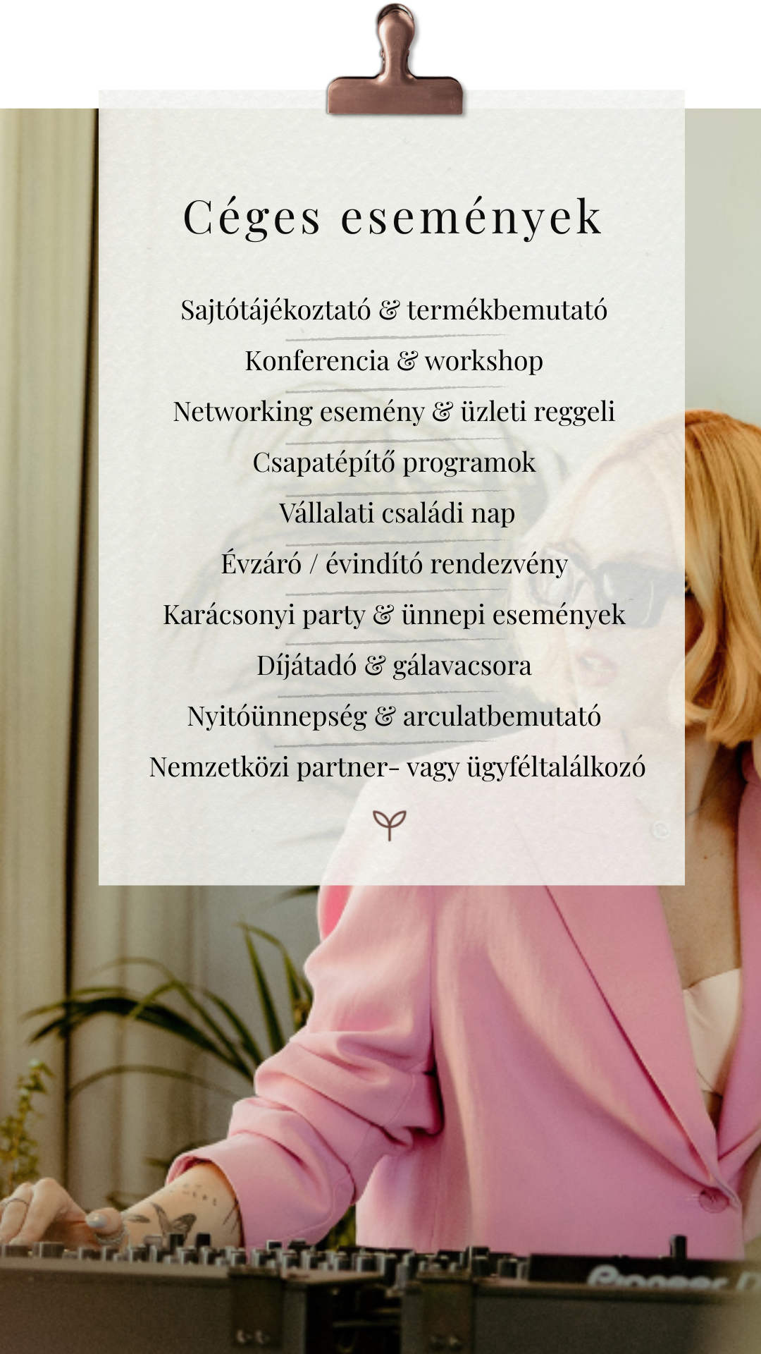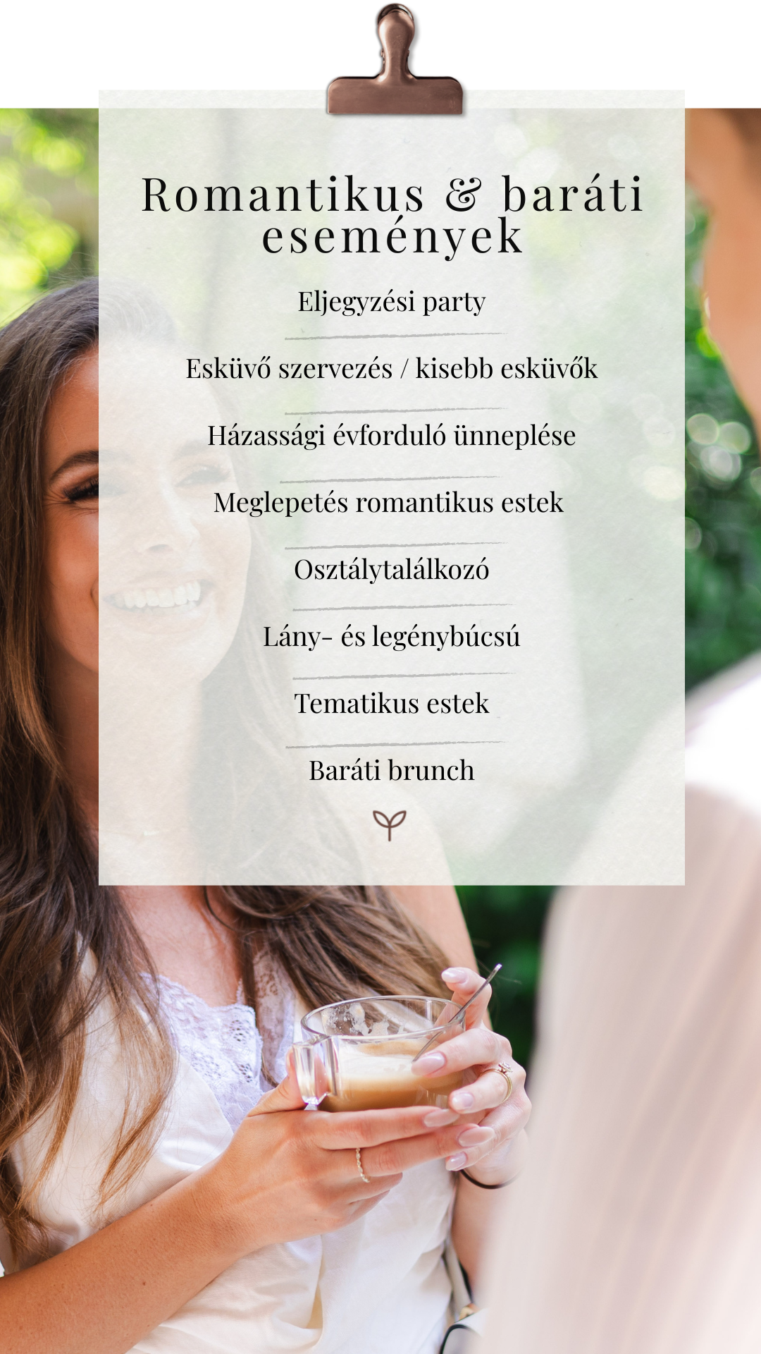 Az ötlettől a zárásig számíthatsz ránk: helyszínt választunk, dekorálunk, programot szervezünk, és mindent megteszünk a tökéletes rendezvényért.